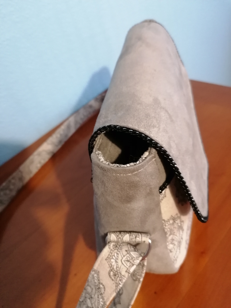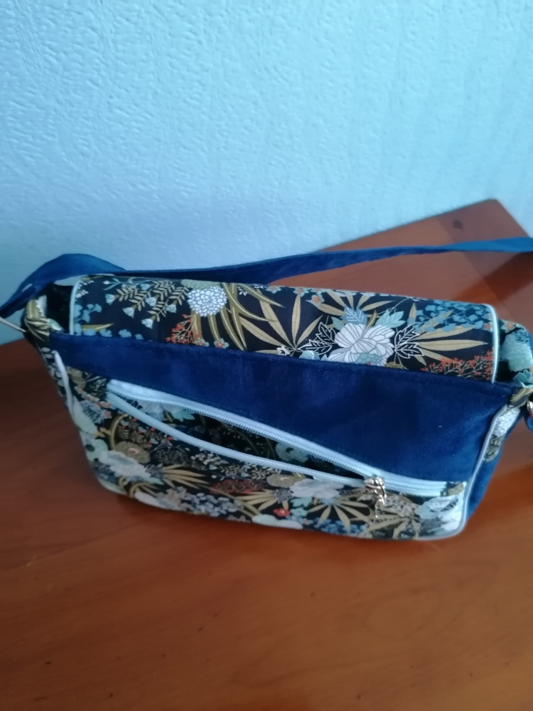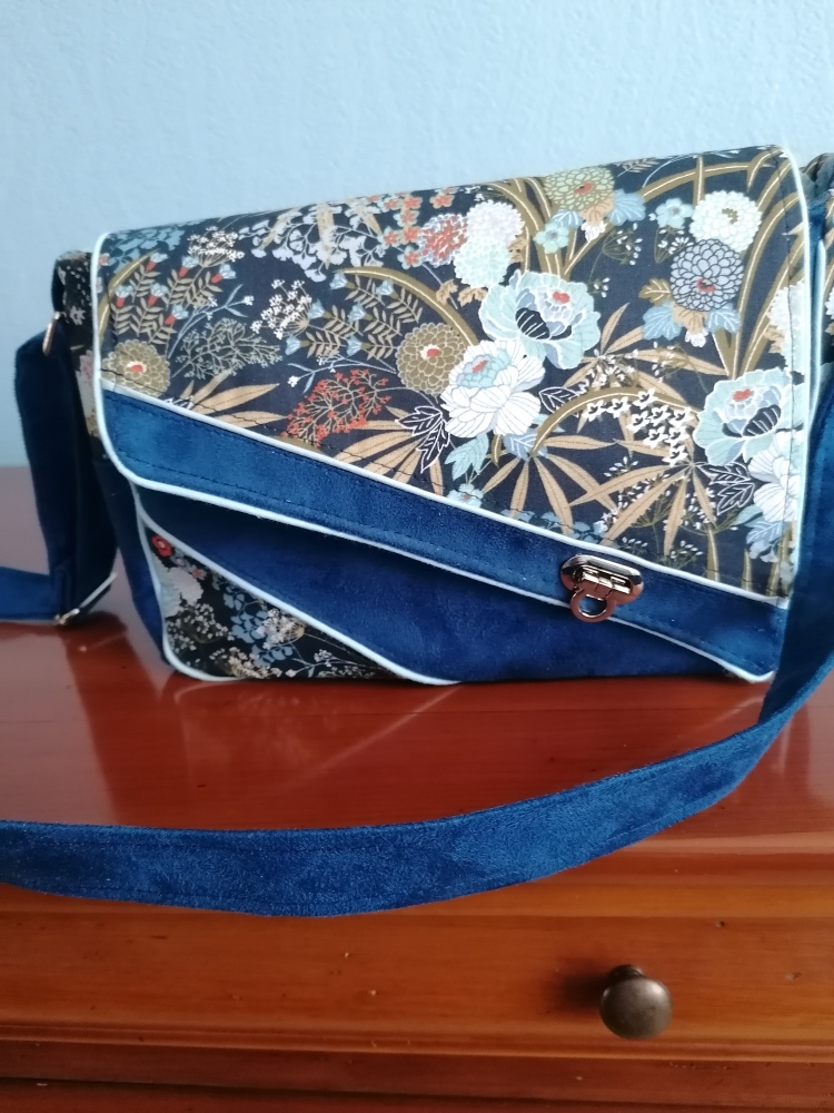 Une autre variation possible, la bandoulière peut être en tissu coton comme pour le sac brun ou en suédine comme le bleu.