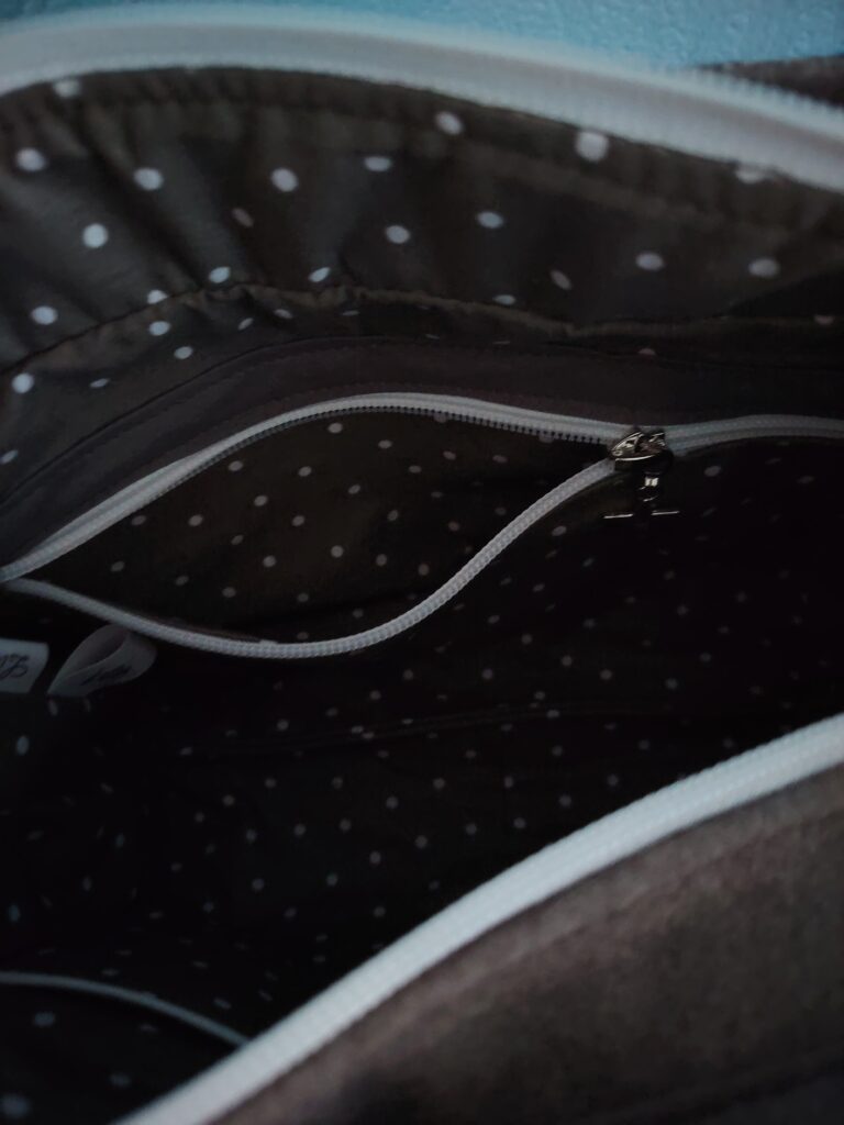 - Une poche zippée de doublure (à l’intérieur du sac)